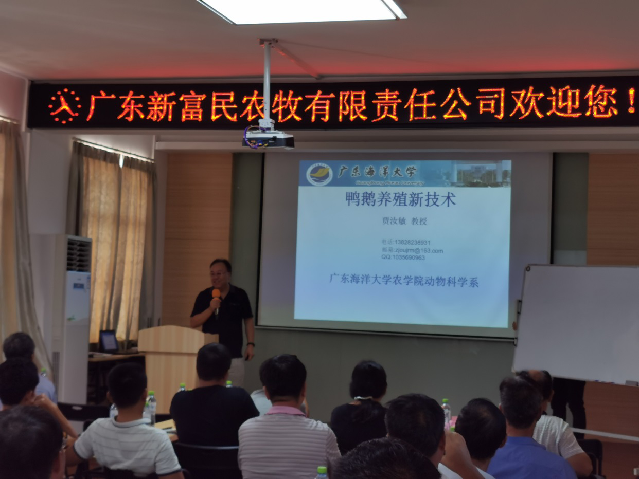 在广东新富民农牧公司进行鸭鹅养殖新技术培训(水禽饲料龙头企业)